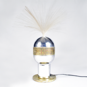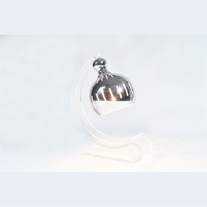 Lamp One-piece curved acrylic base and arm, spherical perforated metal shade