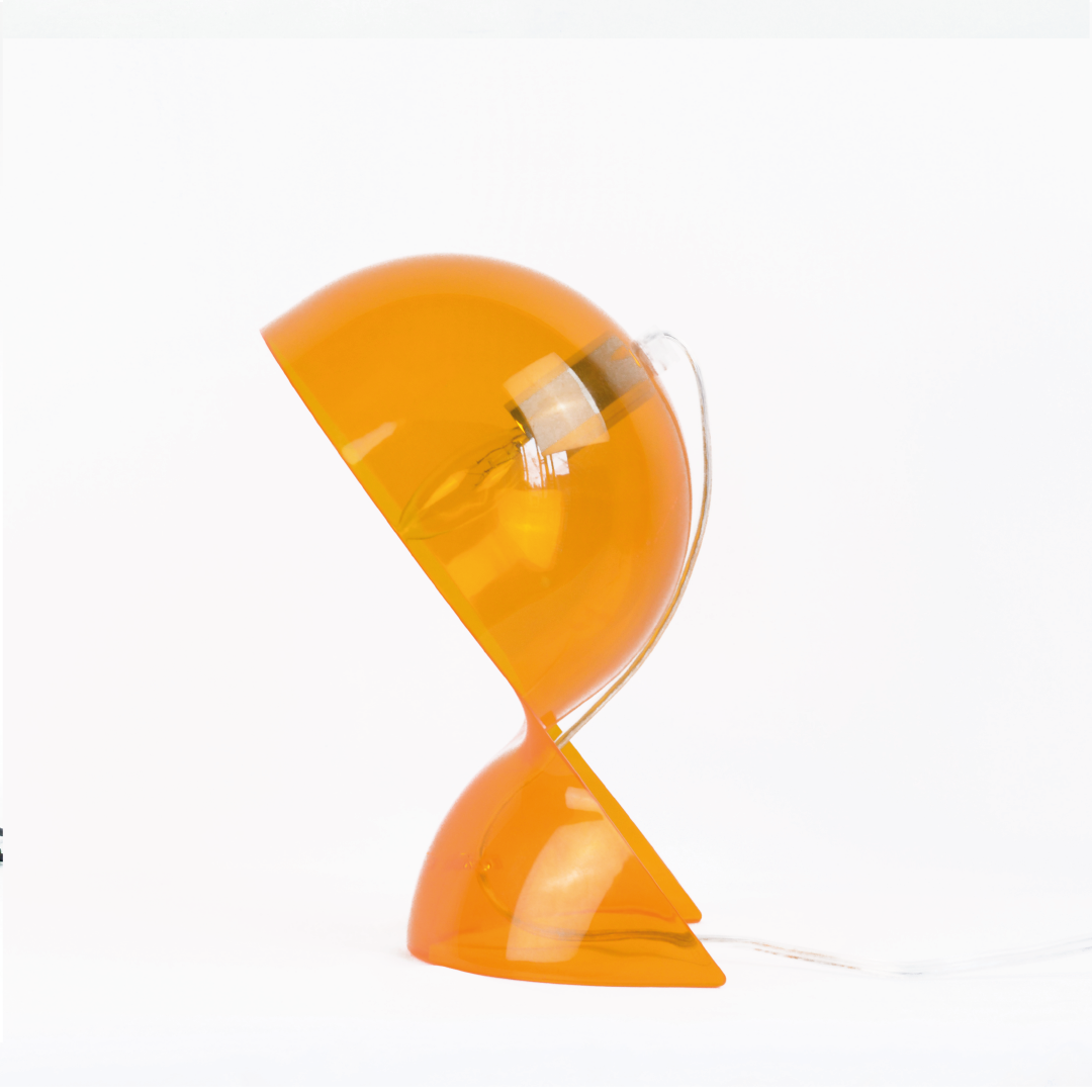 One-piece, hemispherical shade, translucent acrylic orange hemispherical base