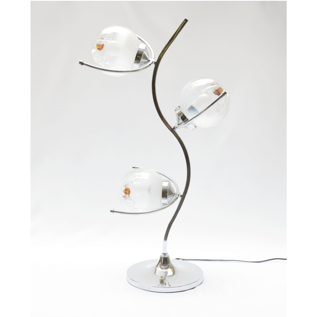 Lamp Desk circular base, curved shaft, three spherical glass screens
